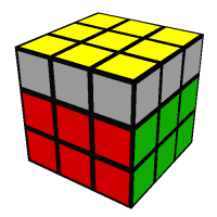 First we will focus on making all the corners yellow (this is identical for the 2x2 cube), there will be other yellow pieces in the cross but we will ignore them for now. The initial state can have 3 cases for the corners: 2 yellow corner pieces facing the top, 1 yellow corner piece facing the top, 0 yellow corner pieces facing the top. One algorithm and its mirror is all it is needed.